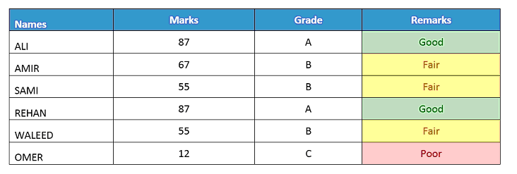 The remarks should be highlighted using conditional formatting as shown in